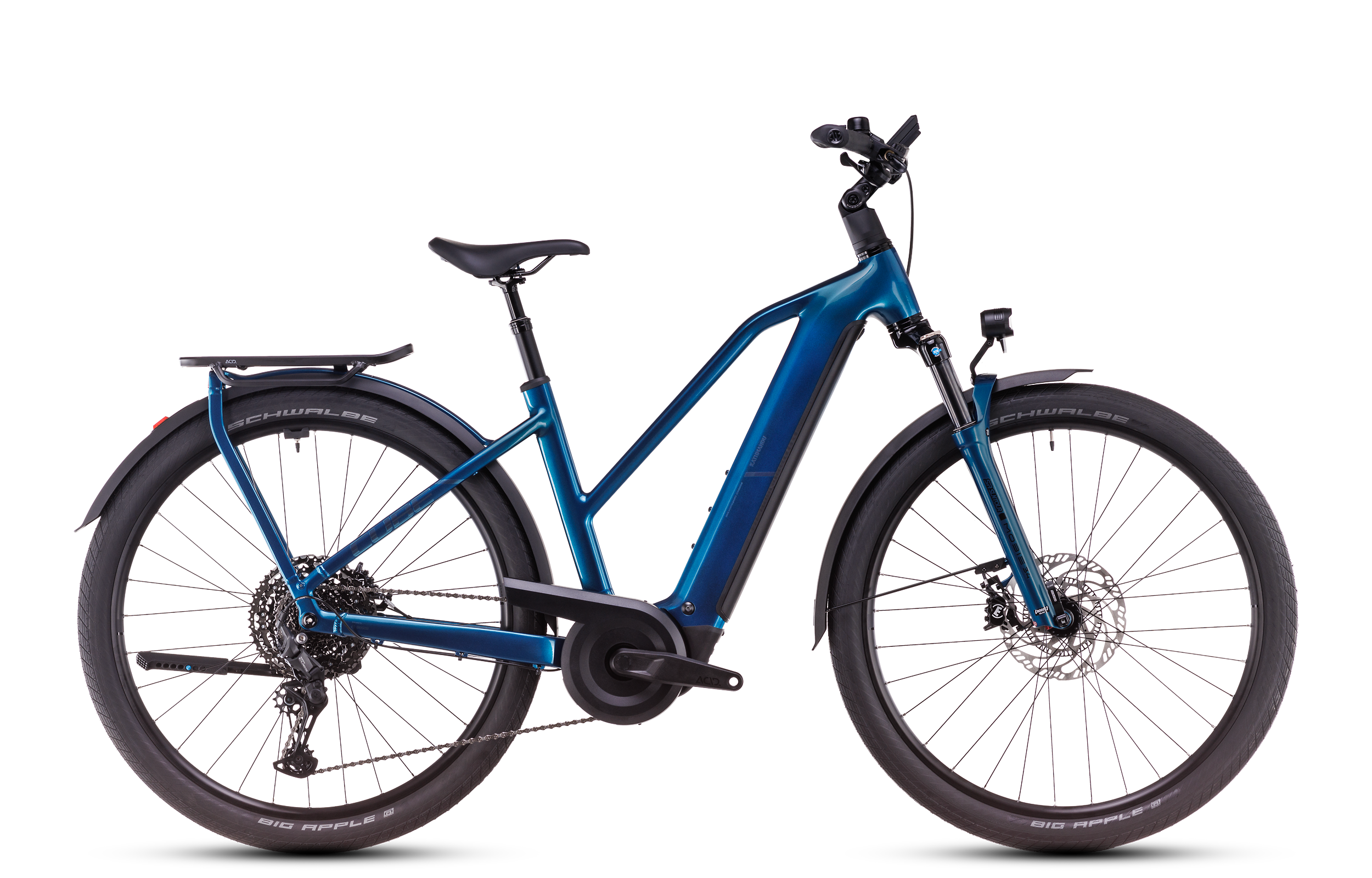 Das Kathmandu Hybrid EX ABS 800 von CUBE hält Touring-Fans auf allen Routen zuverlässig den Rücken frei. Wie? Mit seinen kraftvoll und supersicher verzögernden hydraulischen Magura MT C ABS Scheibenbremsen mit Anti-Blockier-System. Damit hat das Vorderrad durchwegs erstklassigen Grip, und zwar bei jedem Wetter und selbst bei sehr abrupten Bremsmanövern. Der CX Motor von Bosch bringt bis zu 85 Nm Drehmoment – und damit extra viel Schub nach vorn – mit und wird dabei von einem 800 Wh starken PowerTube Akku gespeist. Diesem Set-up haben wir eine einfach bedienbare Shimano Cues 11-Gang Schaltung zur Seite gestellt, welche die Power top übersetzt aufs Hinterrad bringt. Wer mit Gepäck unterwegs ist, ob auf dem Weg ins Büro oder bei einer längeren Wochenendausfahrt, profitiert von unserem anpassbaren und superstabilen integrierten Gepäckträger IC 3.0. Ein Komplettset an Zubehör verleiht diesem Tourer den letzten Schliff. Dein Bike-Abenteuer, dein Fahrspaß!