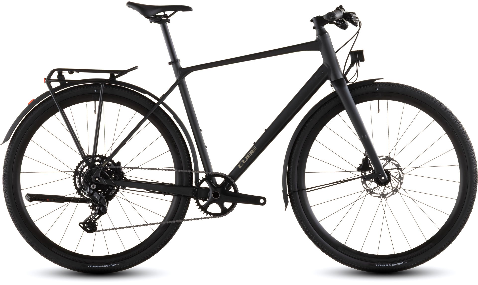 Ein Blick auf das Nulane Pro FE und es ist klar: Dieses Bike ist ein Freund fürs Leben! Seine Carbongabel ermöglicht nicht nur 1a-Lenkpräzision, sondern auch hohen Fahrkomfort. Sichere Bremsvorgänge bei jedem Wetter sind das Spezialgebiet der leistungsstarken hydraulischen Scheibenbremsen. Die 40 mm Schwalbe Reifen zeigen sich ebenso pfeilschnell wie griffig, und zwar sowohl auf Asphalt als auch auf Strecken über Land. Shimano steuert seine breit gefächerte, einfach bedienbare 9-Gang Cues Schaltung bei – so werden jede Route und jeder Anstieg zum Spaziergang. Praktisch: Weil wir mit Gepäckträger, Schutzblechen und Lichtern ein Komplettset an Zubehör verbaut haben, ist dieses Bike zu jeder Zeit startklar, egal wohin es geht. Der perfekte Komplize zum Pendeln, zum Einkaufen, zum Spaßhaben!