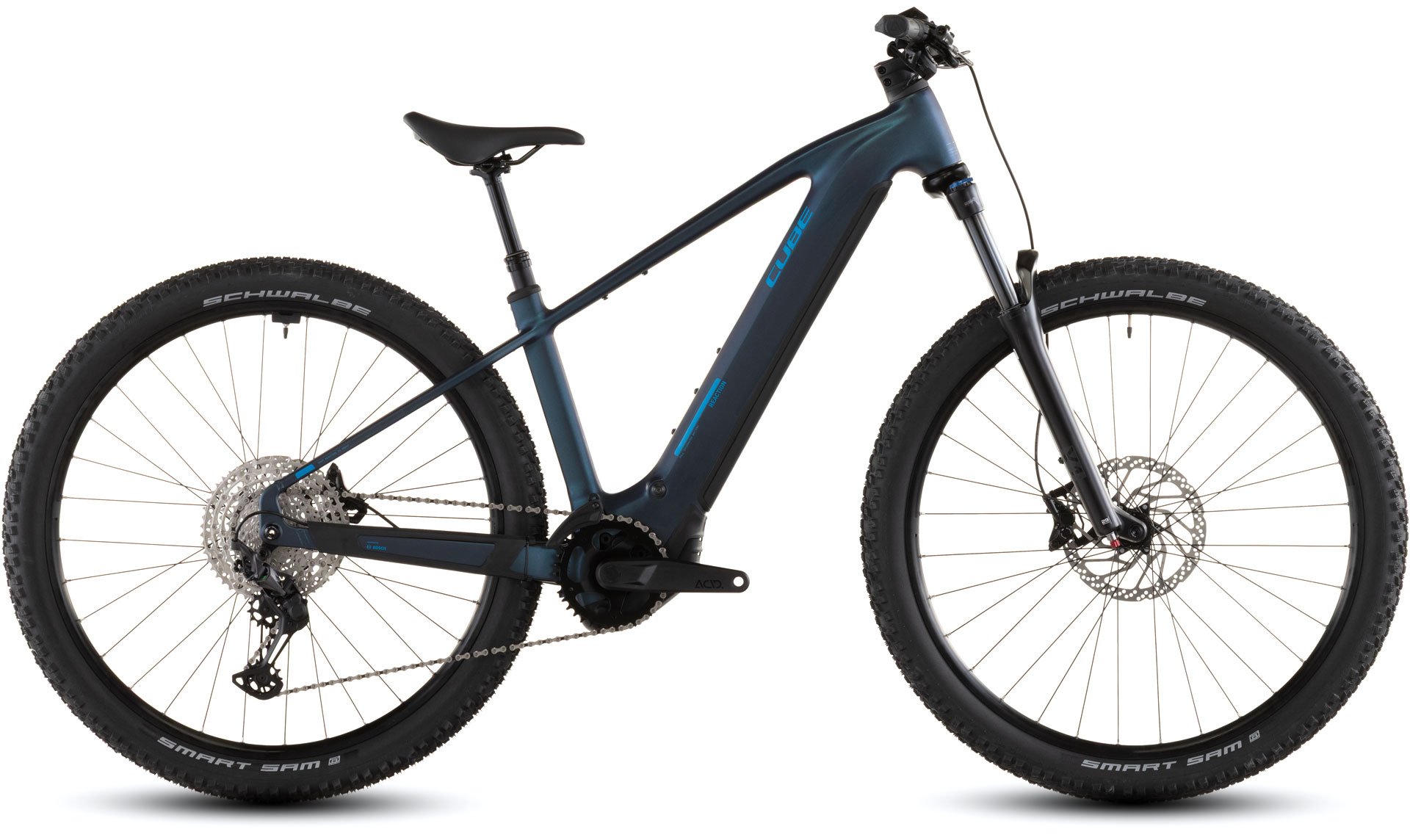 Das Reaction Hybrid kombiniert die Vielseitigkeit eines Mountainbikes mit dem Support durch einen E-Motor und dem cleveren Design von CUBE: Dank seinem geschmeidig arbeitenden, leistungsstarken Bosch CX Antrieb und 800 Wh starken Akku sind jede Menge Power und Reichweite garantiert, und zwar auf jeder Route, ob über Asphalt oder im Gelände. Dabei macht die einfach bedienbare Shimano XT 12-fach Schaltung selbst steile Anstiege zum Kinderspiel. Bergab packen die hydraulischen 4-Kolben-Scheibenbremsen von Shimano kraftvoll zu und verzögern die griffigen Schwalbe 2.6 Zoll Reifen zuverlässig und sicher. Für eine Extraportion Fahrkomfort und Kontrolle auf ruppigeren Strecken haben wir eine Luftfedergabel mit 120 mm Federweg (100 mm bei kleinen Rahmengrößen und allen Tiefeinsteiger-Modellen) und eine versenkbare Sattelstütze verbaut. Fazit: Das Bike steht bereit – und jetzt kommst du!