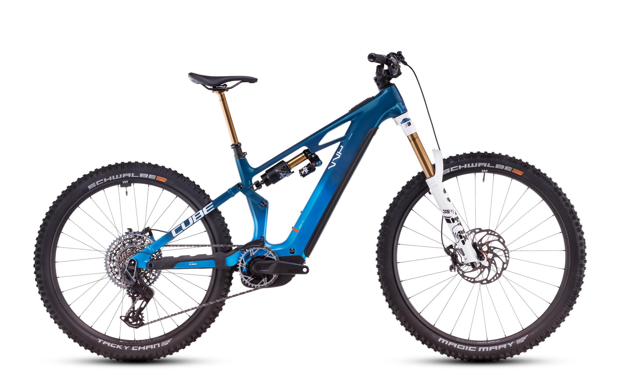 Das Stereo Hybrid ONE77 HPC AT 800 Fully ist ganz klar auf Big-Mountain-Riding ausgelegt – der Beweis: die Fox Float 38 Factory GripX2 Federgabel, die gemeinsam mit dem dazu passenden Float X2 Factory Dämpfer – und damit 170 mm Federweg – sämtliche Schläge von Buckeln und Löchern auf dem Trail souverän glattbügelt. Dazu bringt der elektronisch gesteuerte XO Eagle Transmission 12-fach Antrieb von Sram die Power des geschmeidig und geräuscharm arbeitenden Bosch CX Motors mit 800 Wh PowerTube Akku präzise dosiert auf den Untergrund. Selbst auf den anspruchsvollsten Lines sorgt die versenkbare Sattelstütze für ein top zuverlässiges, sicheres Handling. Apropos Sicherheit: Die hydraulischen XT Scheibenbremsen von Shimano ermöglichen kompromisslose Geschwindigkeitskontrolle. Last, but not least kleben die unterschiedlich großen Newmen Beskar 30 Laufräder (Mullet-Set-up) mit Schwalbe 2.4 Zoll Magic Mary beziehungweise Tacky Tan Pneus förmlich auf dem Trail.