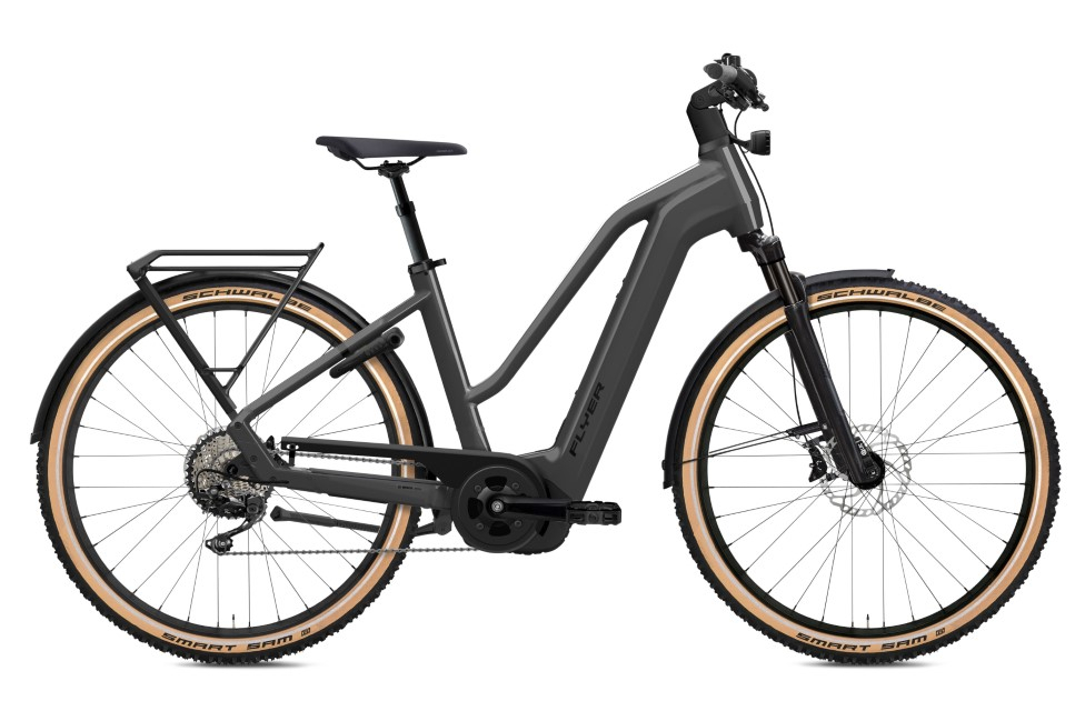 Die aufrechte Sitzposition, kombiniert mit einem bequemen Sattel, ist auf ein besonders angenehmes Fahrgefühl ausgelegt. Damit können Sie unzählige Stunden auf dem Bike verbringen. Bei der Ausstattung haben Sie die Wahl zwischen Enviolo-Nabenschaltungen mit «Gates Carbon Drive»-Antrieb oder Shimano-Kettenschaltungen. Für maximale Sicherheit ist das Gotour auch mit dem neusten Antiblockiersystem (ABS) erhältlich. Ganz praktisch sind ausserdem die mit Seitentaschen kompatiblen Gepäckträger, die Schutzbleche sowie die kräftige und formschön verbaute FLYER Beleuchtung.