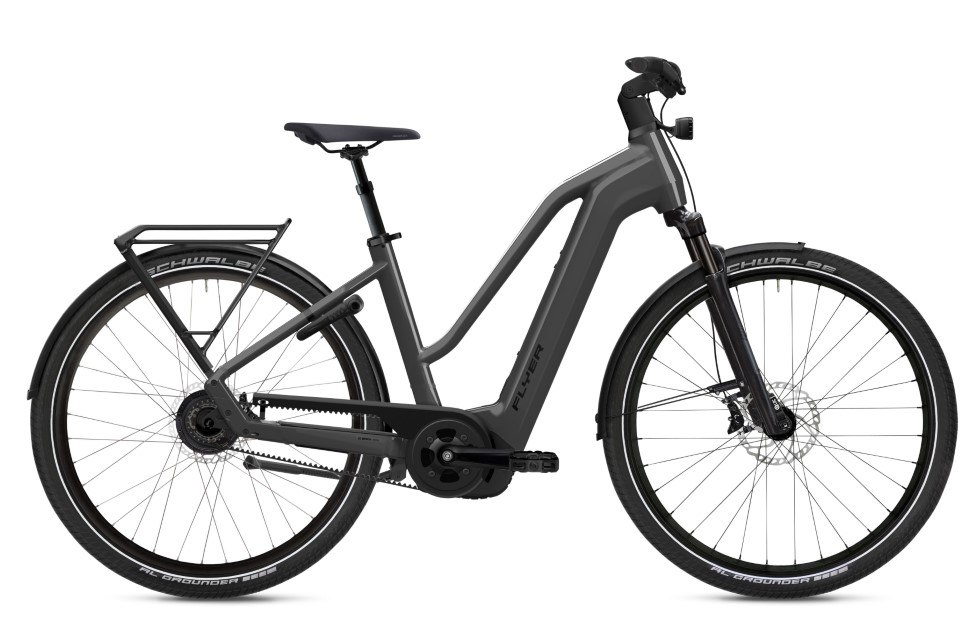 Die aufrechte Sitzposition, kombiniert mit einem bequemen Sattel, ist auf ein besonders angenehmes Fahrgefühl ausgelegt. Damit können Sie unzählige Stunden auf dem Bike verbringen. Bei der Ausstattung haben Sie die Wahl zwischen Enviolo-Nabenschaltungen mit «Gates Carbon Drive»-Antrieb oder Shimano-Kettenschaltungen. Für maximale Sicherheit ist das Gotour auch mit dem neusten Antiblockiersystem (ABS) erhältlich. Ganz praktisch sind ausserdem die mit Seitentaschen kompatiblen Gepäckträger, die Schutzbleche sowie die kräftige und formschön verbaute FLYER Beleuchtung.