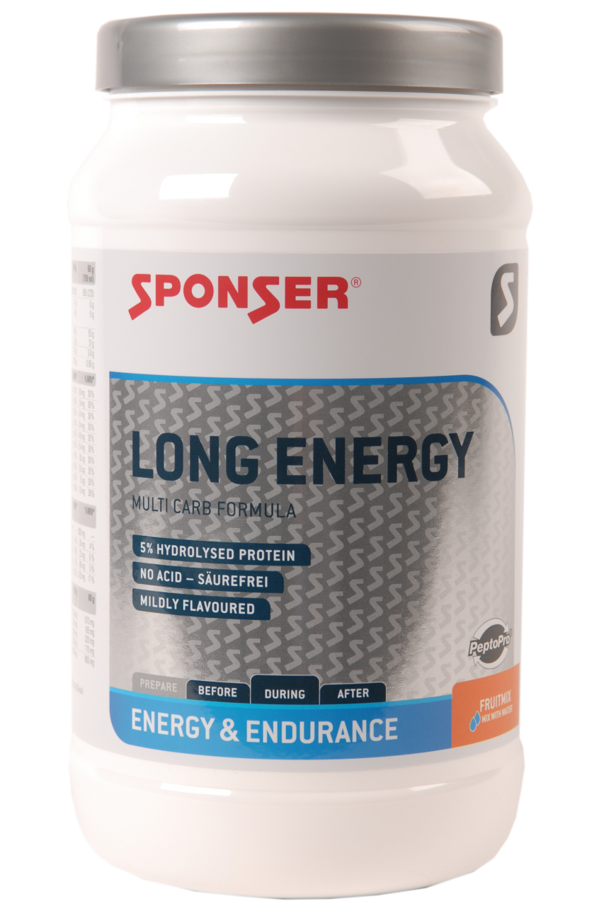 LONG ENERGY basiert auf einer Multi Carb Formula mit kurz- und langkettigen Kohlenhydraten. Damit bleibt dein Blutzuckerspiegel auch während einer langen Ausdauerbelastung stabil und die Leistungsfähigkeit kann optimal erhalten werden. Das patentierte Gerstenhydrolysat VITARGO® bewirkt mit seinem hohen Molekulargewicht eine tiefe Osmolalität und hilft damit u.a. dem optimalen Wiederauffüllen der entleerten Glykogenspeicher. Die fünf Hauptelektrolyte Natrium, Chlorid, Kalium, Magnesium und Kalzium dienen dem Ausgleich des Schweissverlustes.