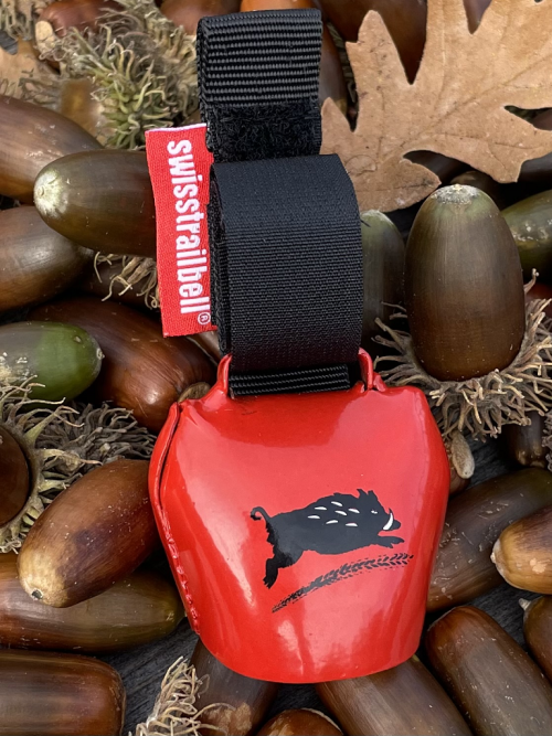Swisstrailbell handbemalt mit Wildsau auf rot, Band schwarz
