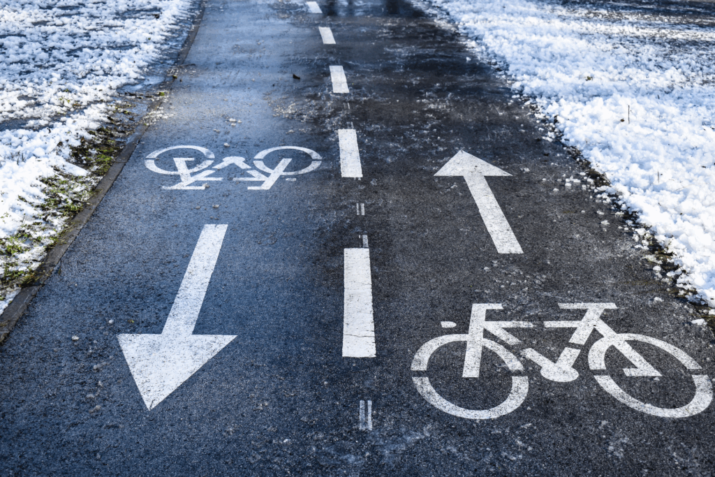Bei Kälte reagiert das Material anders – Bremswege verlängern sich, Reifen haften weniger. Fahre vorausschauend, vermeide abrupte Lenkbewegungen und halte Abstand zu Autos und Trottoirs, wo sich oft Schneematsch sammelt.